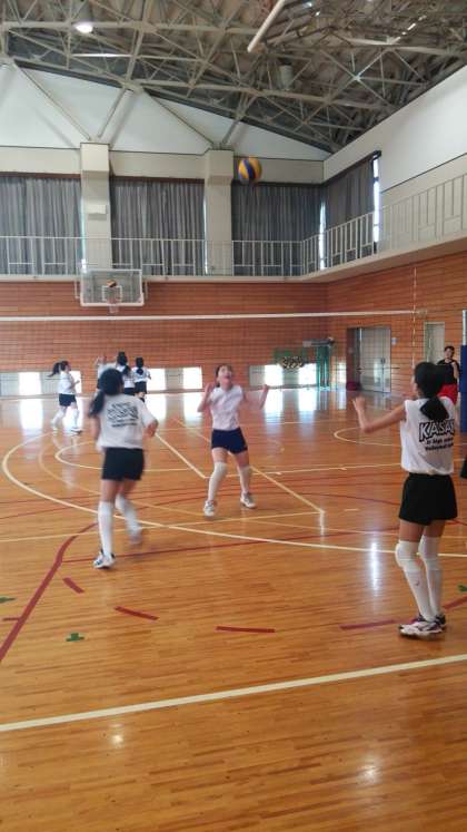 体育館では女子バレーボール部が練習です。