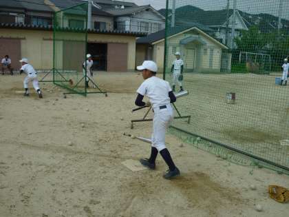 花山中は活発に打つチームですが,バントといった小技もおろそかにせず練習をしています。