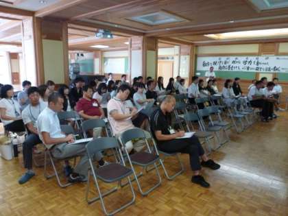 本日の午前中,鏡山小学校・陵ヶ岡小学校・花山中学校の教職員合同で学力向上などについての研修会を行いました。