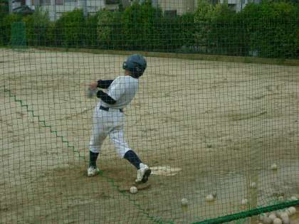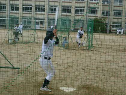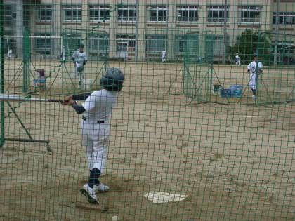 今日は本当は練習試合だったそうですが,早朝の雨のため中止となり急遽,学校で打ち込みです