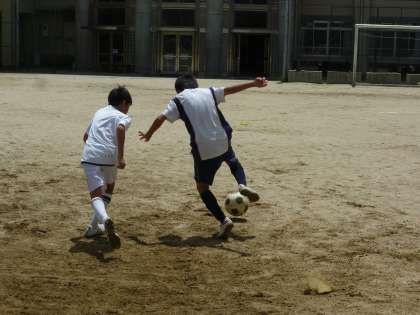 厳しいボディコンタクトのなか,必死でボールをキープし抜きにかかります