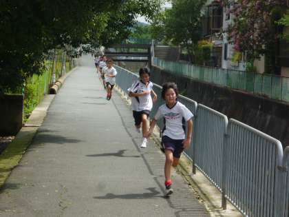 サッカー部の走り込みです