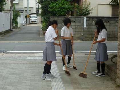 関西大会を終えた吹奏楽部に,いつもの朝の風景が戻ってきました。校門付近での朝清掃です。