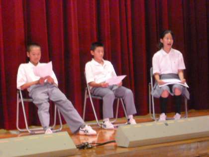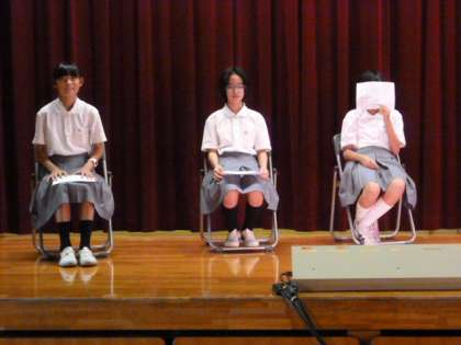 合唱コンクールが昨日終わった今日から学校祭文化の部の取組がいよいよ,仕上げの時期をむかえました。体育館では,各学年代表による学年劇のけいこが本格化しています