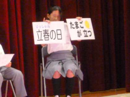 1年生の学年劇は「たまごの立つ話」という題です。
