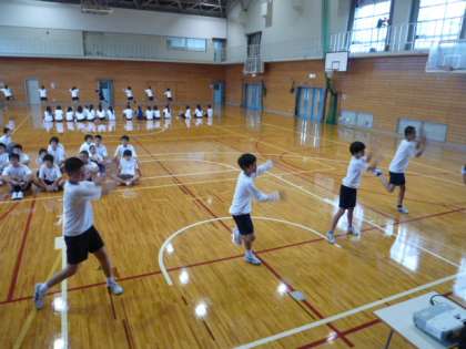 2年生が,体育の部で披露するオリジナルソーランを練習しています