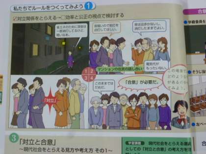 対立する意見をどういうふうに合意へ持っていくのか,民主主義の基本的考え方の授業です