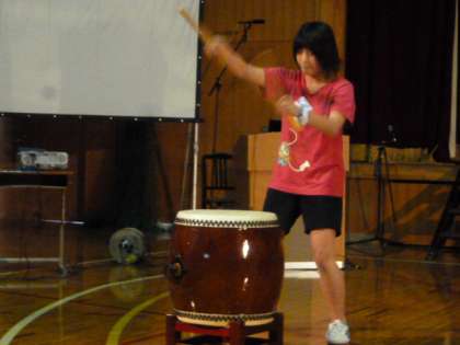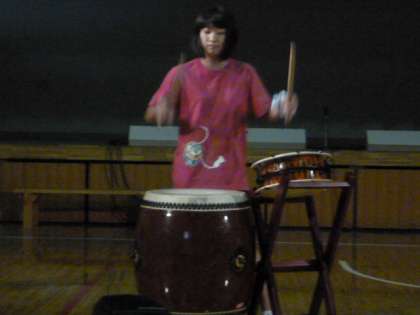 有志による発表です。まずは3年生4名の和太鼓演奏です