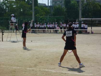 9月20日に四条中学校にて女子ソフトテニス部の秋季新人大会団体の予選リーグ戦が行われました。