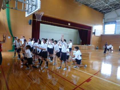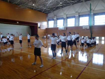 体育館で,3年生全員がヒップホップソーランの練習に取り組んでいます