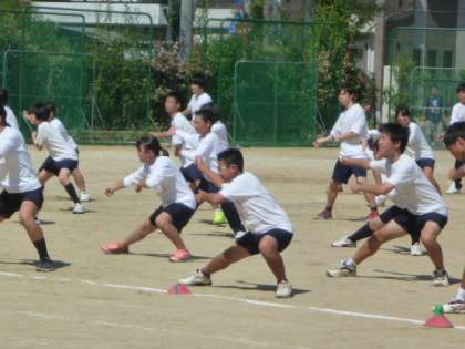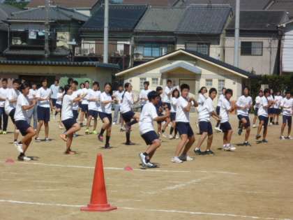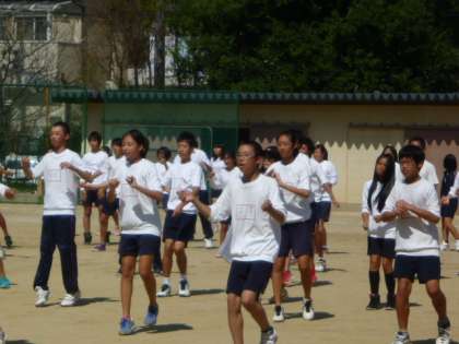 3年生に続いて2年生もグランドで学年練習です
