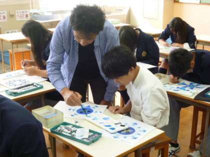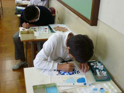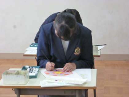 いわゆるシンメトリーといわれる模様に慎重に着色しています