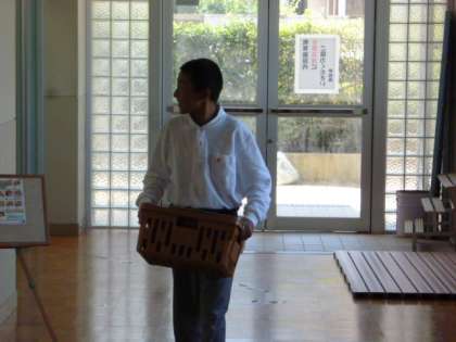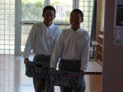 給食をとりにいく風景です