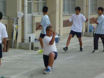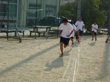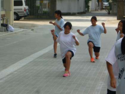 陸上部は校庭の補助運動からです