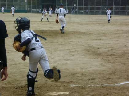 序盤に相手のミスに乗じて,ヒットもからめて花山中学校が2点を先行するものの,すぐに2点を返され同点となります