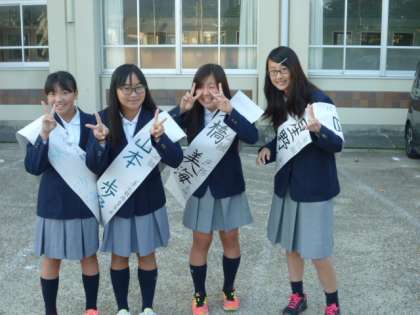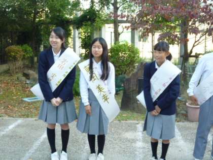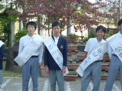 10月19日(月)に生徒会本部の改選があるため,今日から立候補するメンバーが校門で選挙活動を開始しました