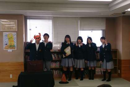 その後6人の文化図書委員さんが3組に分かれ,それぞれのお話をうまく読み聞かせてくれました。小さい子供たちも大勢いましたが,みんなとっても楽しそうでしたよ。