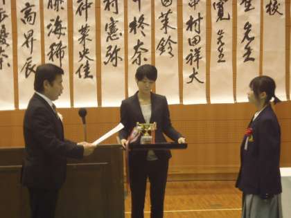 10月31日(日)に下京区にある総合教育センターにおいて,京都市中京区総合文化祭「弁論大会」が開催されました。今年で第51回を数えるこの大会には,京都市内の中学校の代表17名の生徒諸君が集まり,それぞれの主義・主張や考えなどを発表し合いました。本校からは,3年生の坂井海優さんが出場し,中学校に入学してからの自分の経験を感情豊かに発表してくれました。結果は,堂々の最優秀賞(第1位)に輝きました。坂井さん,本当におめでとう!!