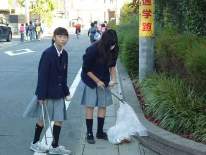 校門前の落ち葉も日に日に増えていきます