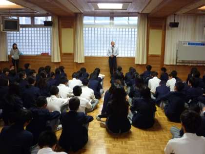 2年生のチャレンジ体験の事後指導の学年集会が1時間目行われました