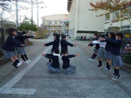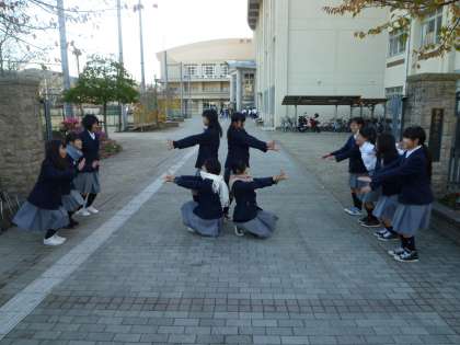 校門の清掃をしている吹奏楽部渾身のアートです
