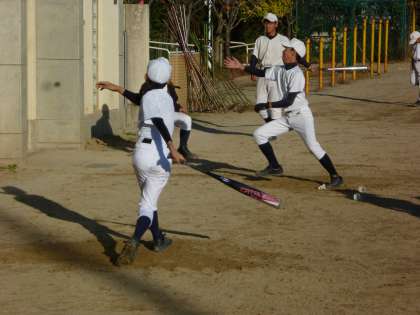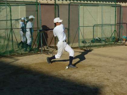 バッティング練習ですが,軟球のかわりにバトミントンの羽根を打っています