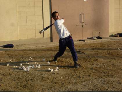冷え込みのきつい朝ですが,生徒はシャツ1枚で汗をかきながらバッティング練習にとりくみます