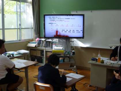 モニターに正答を写しながら,振り返りをしています