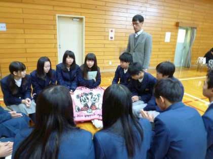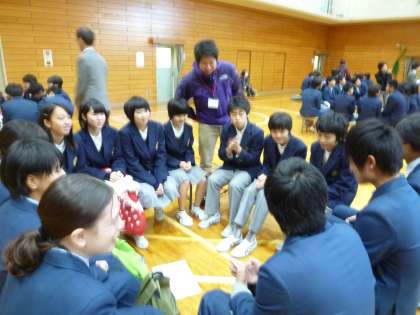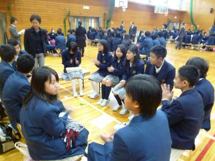 座が少し和んだあと,中学校生活でがんばってきたこと・今後の進路についてなど意見交流をしました。