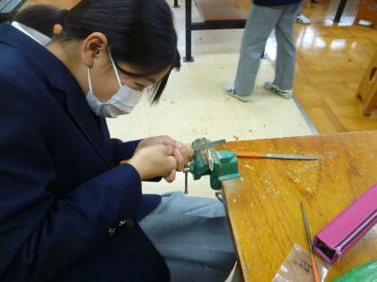 技術で金工作業です。地道に金属を削り形をつくっていきます
