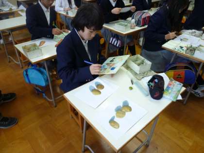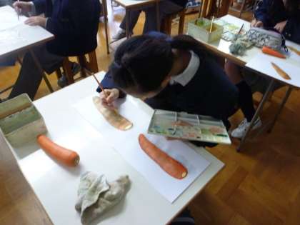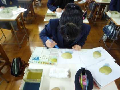 美術のデッサンに着色をしています。みんな上手ですね