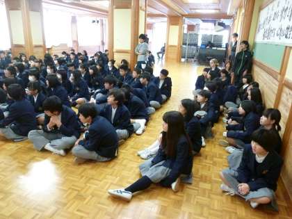 生徒たちも,興味をもって聴くだけでなく学習する顔つきで取り組んでいます