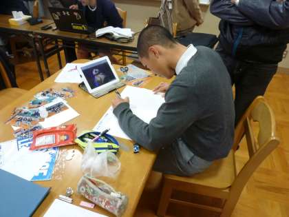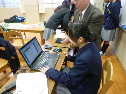 三者懇談の最中にランチルームで卒業アルバムの作成が行われています