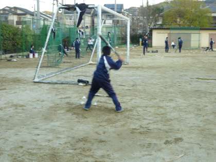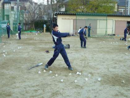 グランドでは野球部が朝練習です