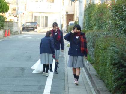 校門ではいつものように吹奏楽部が清掃活動をしてくれています
