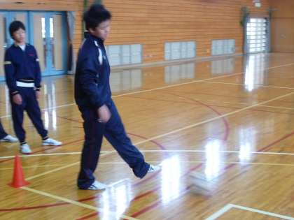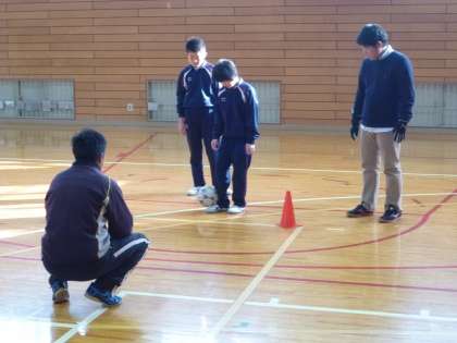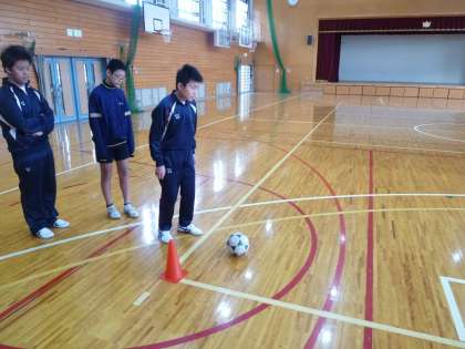 6組は体育館でフットサルに取り組みます