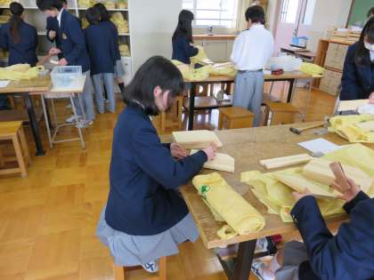 1年生が木工室にて技術の実習です