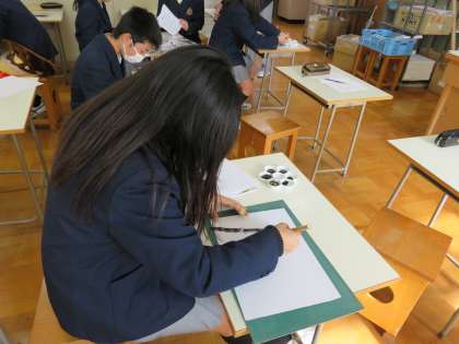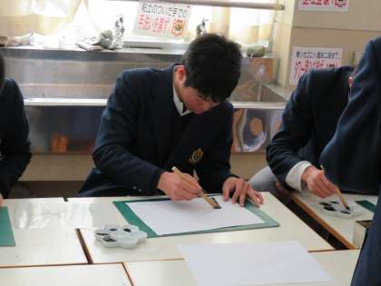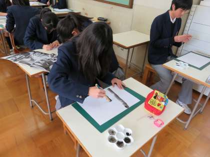 美術の先生の模範を見てから,各自で「竹」を表現します
