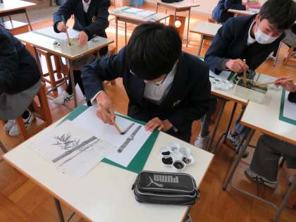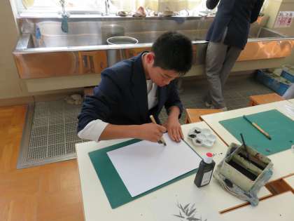 最初は,なかなか難しいようでしたが,何度か練習を重ねていくとそれぞれの味のある「竹」が描けるようになっていきます
