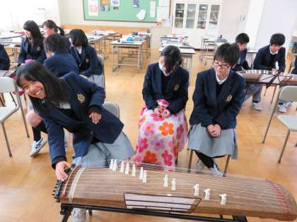 2年生は音楽で「琴」の演奏に挑戦中です