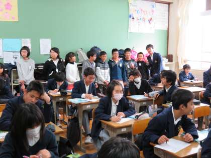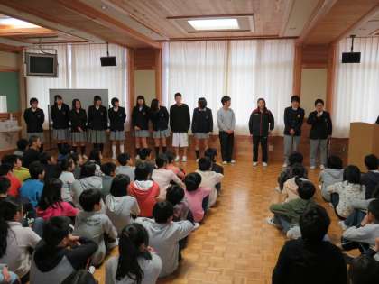 見学後,再び多目的室に集まり,今度は部活動のキャプテンから部活紹介です