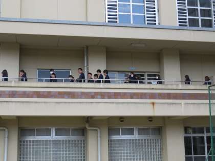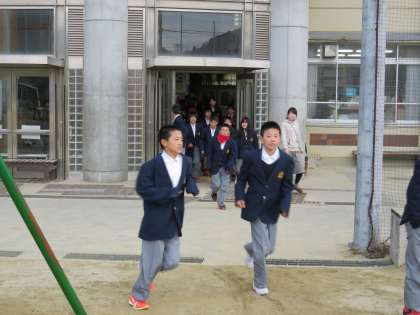 400名近い生徒が,スムーズに行動できるよう避難経路を確保し避難します