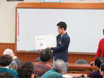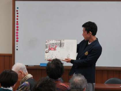 まずは,絵本の読み聞かせです。20分近くの大作に挑戦してくれました