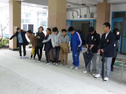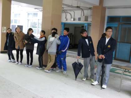 今週から毎週月曜日に鏡山小学校と陵ヶ岡小学校に生徒会本部が8:00〜8:10の間,あいさつ運動を小学生と合同で行います。