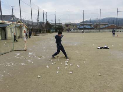 雪がところどころ残り,グランドも凍結している箇所が多くありますが,寒さを吹き飛ばすように練習に励んでいます