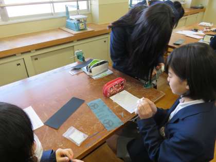 2年生が技術の授業でキーホルダー製作に取り組んでいます。