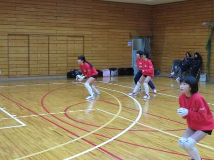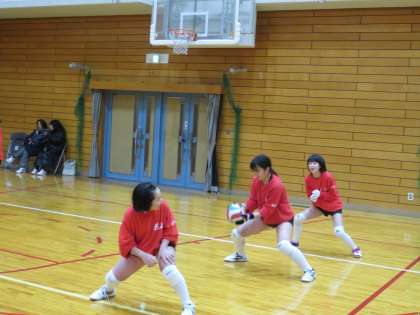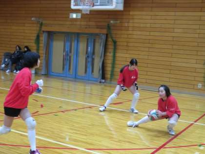 午前中,体育館で女子バレーボール部が練習です
