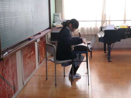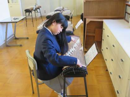 音楽では琴のテストをしています