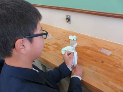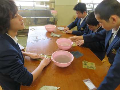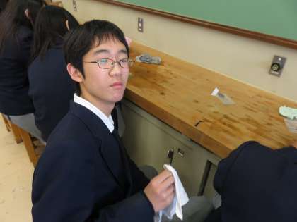 2年生は技術で昨年から製作してきたキーホルダーの仕上げに入っています