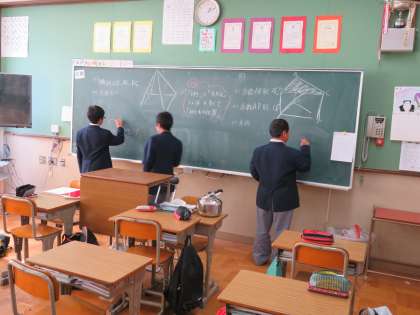 1年生では,昼休みも黒板を使って学習している人がいます